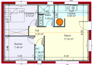 Le présent projet porte sur la construction d’une maison individuelle située sur une parcelle intégrée à un lotissement actuellement en cours de développement. Ce programme d’aménagement a pour objectif d’accueillir de nouvelles habitations dans un cadre résidentiel cohérent et maîtrisé. La parcelle concernée est destinée à accueillir une maison à usage d’habitation principale. Elle bénéficie des réseaux et des voiries récemment créés dans le cadre de l’aménagement du lotissement. La maison projetée présente une surface de plancher de quarante-sept mètres carrés. Elle comprend une chambre, un bureau ainsi que les pièces de vie nécessaires à un usage d’habitation principale.