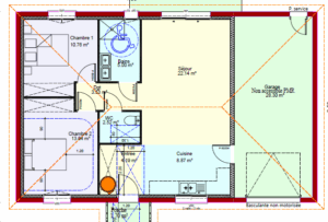 La maison projetée développe une surface habitable de 70 m² et comprend deux chambres. Le projet prévoit également la réalisation d’un garage, apportant une solution de stationnement privative et sécurisée.